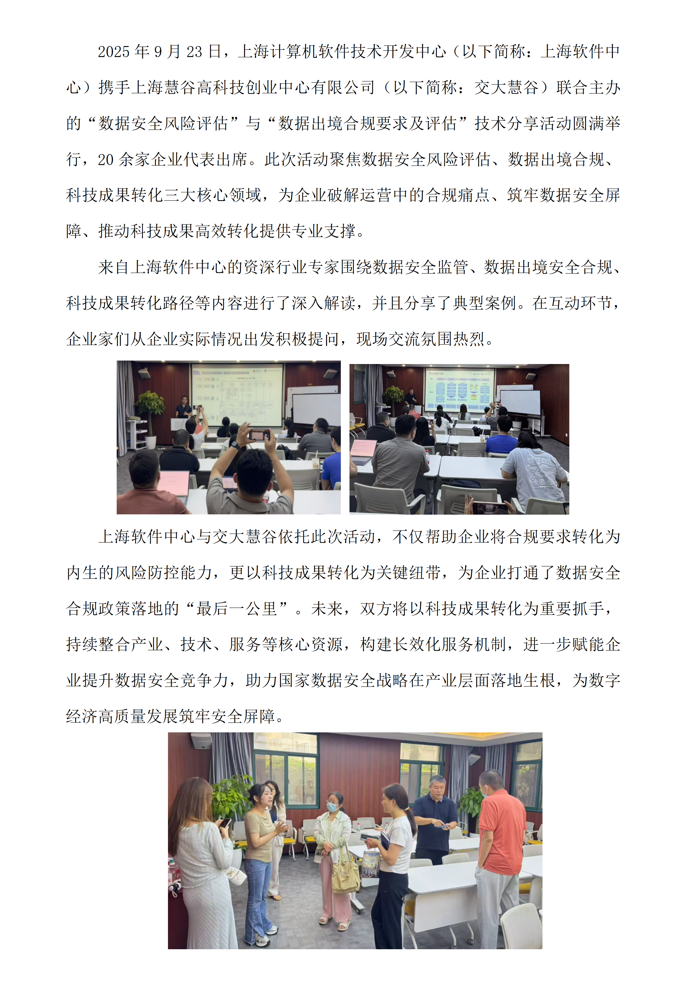 上海软件中心联合交大慧谷举办“数据安全风险评估”与“数据出境合规要求及评估”技术分享活动
