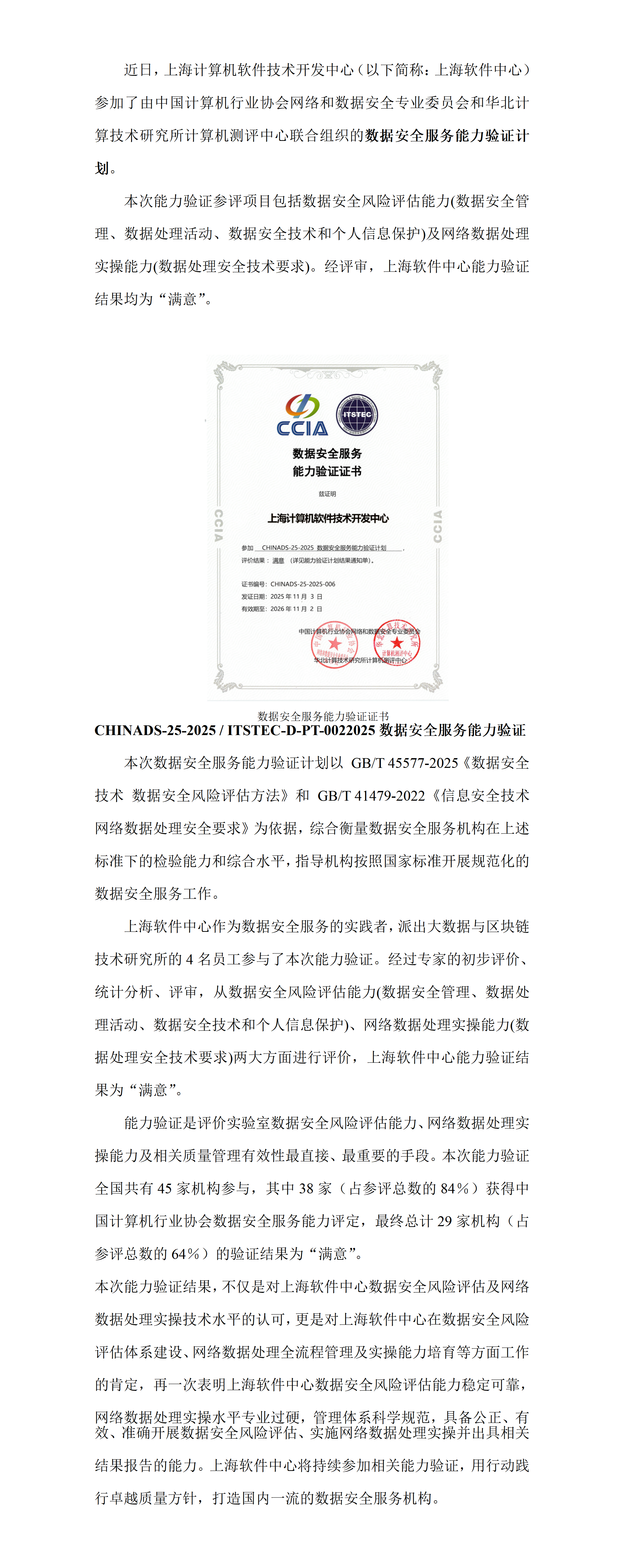 上海软件中心顺利通过2025年数据安全服务能力验证